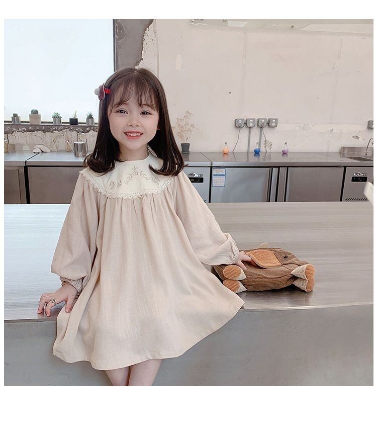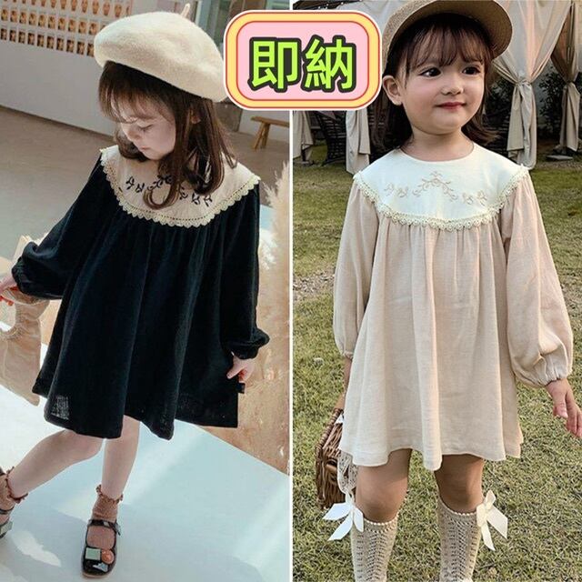 キッズワンピース 花柄刺繍 レース レトロ風 女の子春秋物 長袖