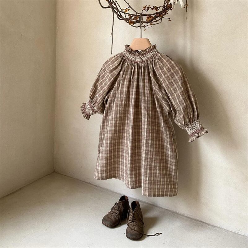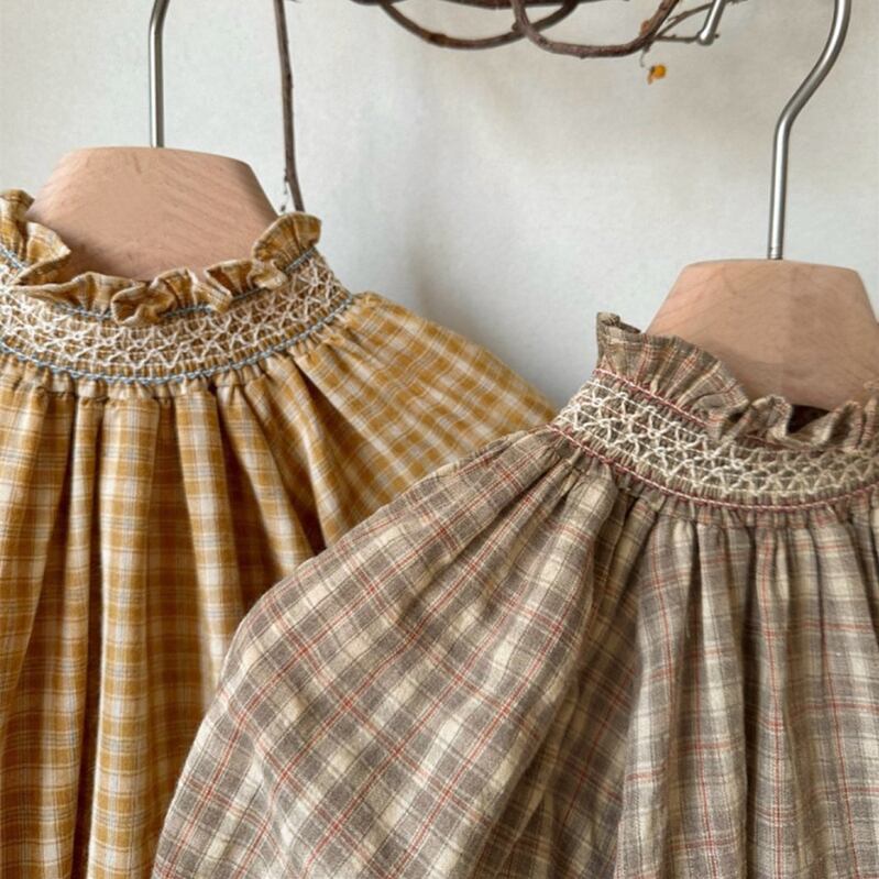 春新作 子供服 立ち襟 チェック柄 ワンピース 可愛い 格子 長袖 女の子 おしゃれ ドレス
