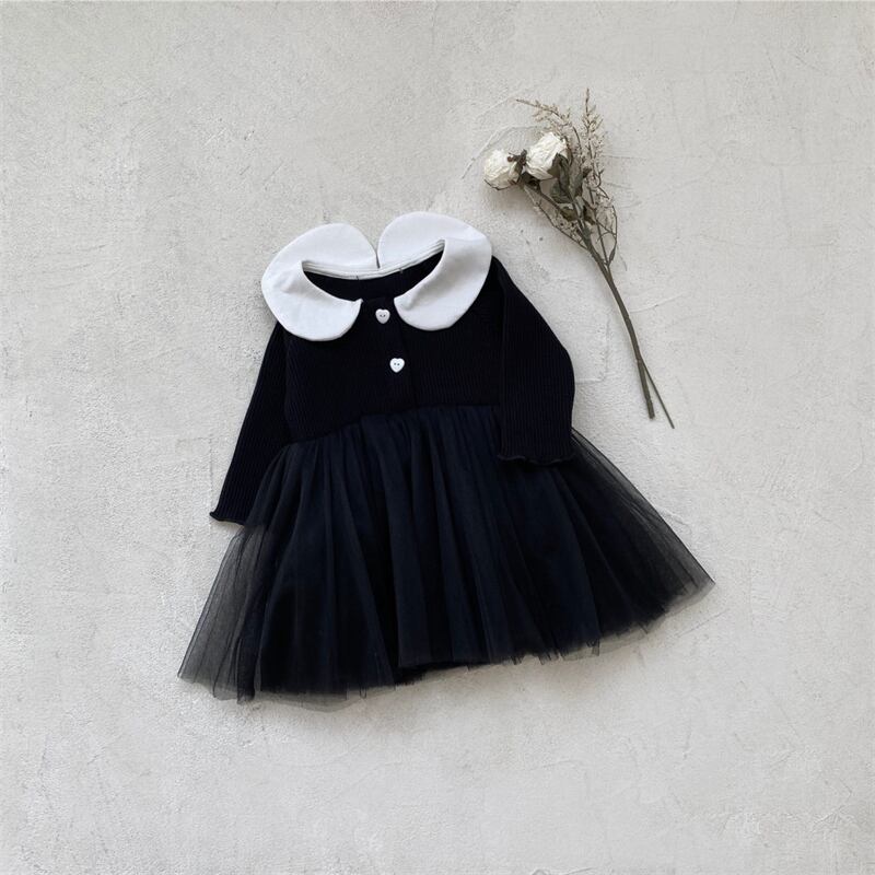 春新作 ベビー服 女の子 ピーターパンカラー リブ チュール ロンパース 可愛い おしゃれ