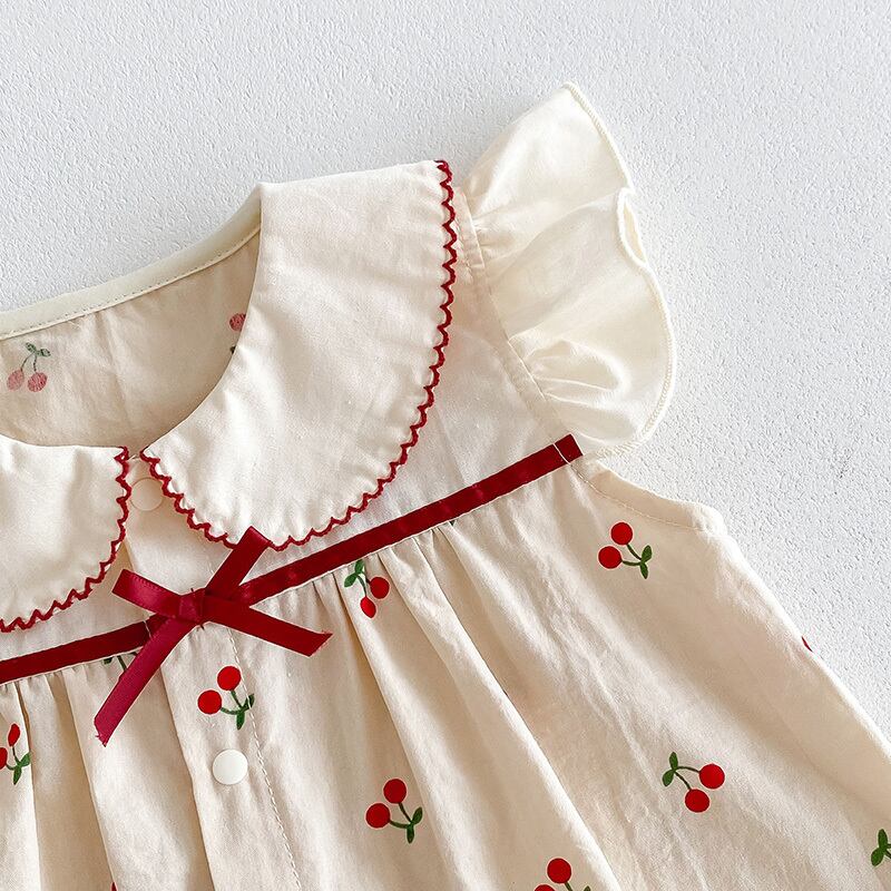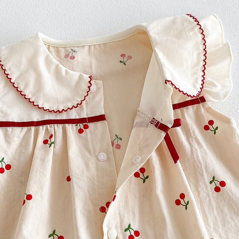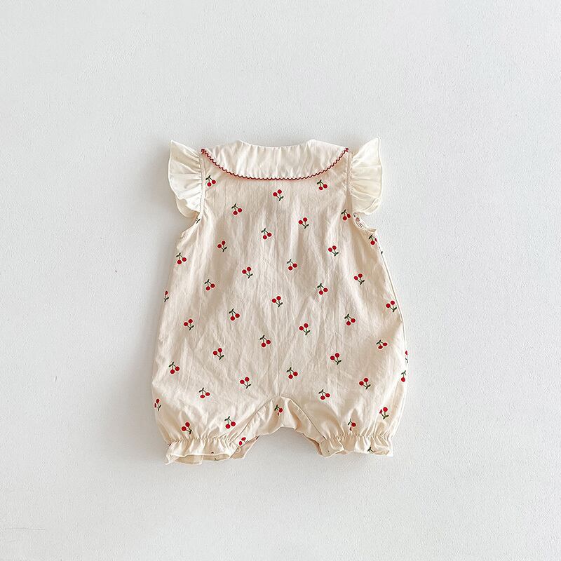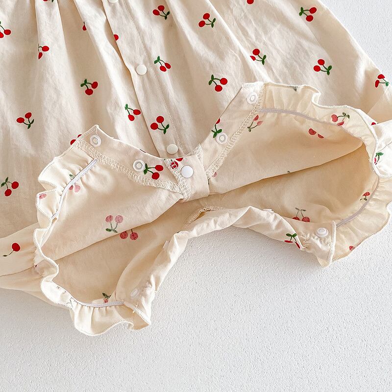韓国風ベビー服 チェリー柄ロンパース フリルスリップオールインワン 新生児
