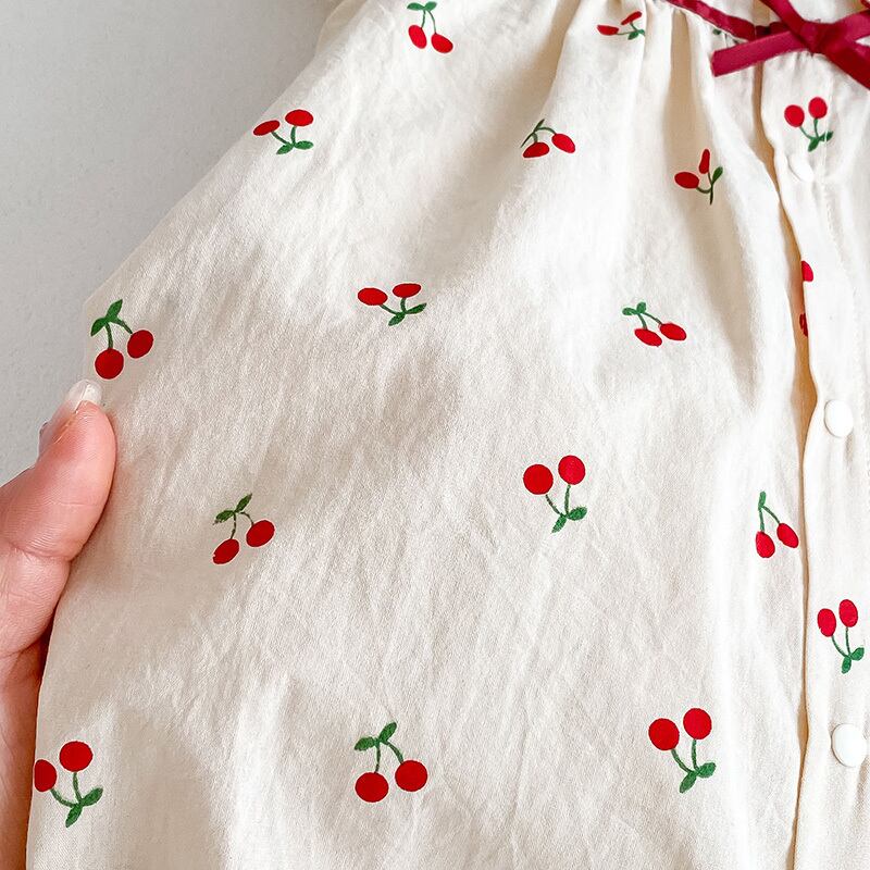 おしゃれで可愛い韓国風のチェリー柄ロンパースが新たに登場しました!新生児のお出かけやリラックスタイムにぴったりな一着です。このチャンスをお見逃しなく!