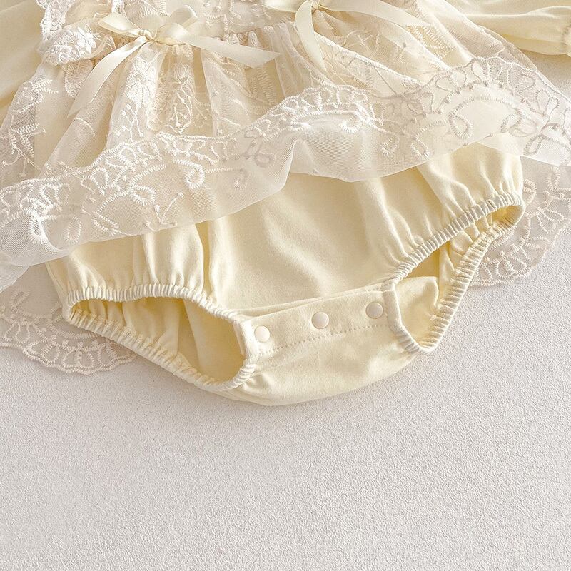 ◇韓国風ベビー服 刺繍レースワンピース ロンパース フォーマル ロングスリップオールインワン★新生児サイズ
