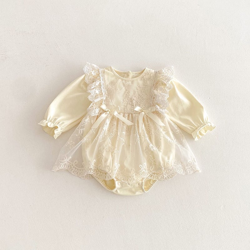 韓国風ベビー服 刺繍レースワンピース ロンパース フォーマル ロングスリップオールインワン