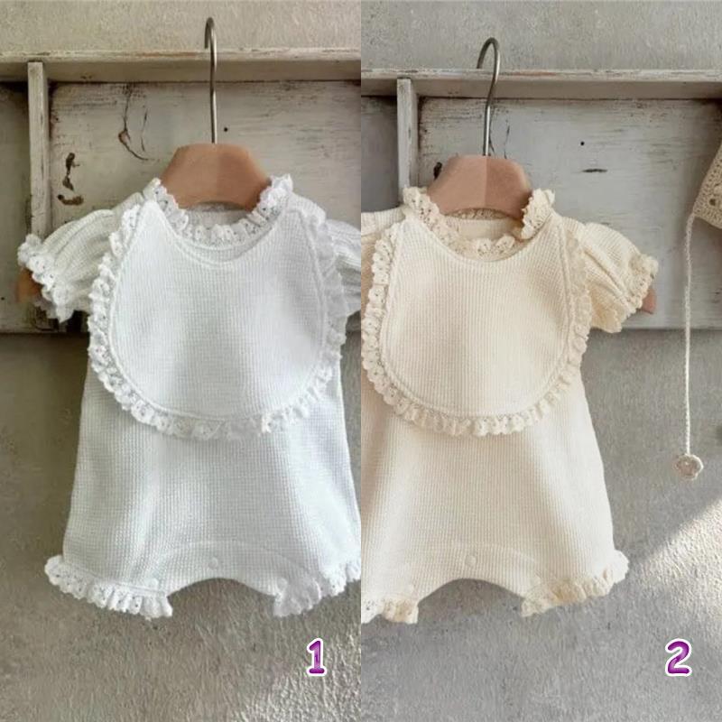 ◆かわいらしいデザインのベビー服ロンパースと涎掛けのセットが新たに登場しました!お子様の魅力を引き立て、特別なお出かけやお家でのリラックスタイムにぴったりなアイテムです。この機会にぜひお試しください!