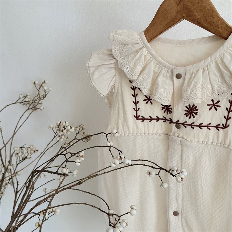 ◆可愛らしいレース襟と華やかな刺繍花柄が特徴のロンパースが新登場しました!お子様の日常のおしゃれや特別なお出かけにぴったりなアイテムです。この機会をお見逃しなく、お子様のファッションを楽しんでください!