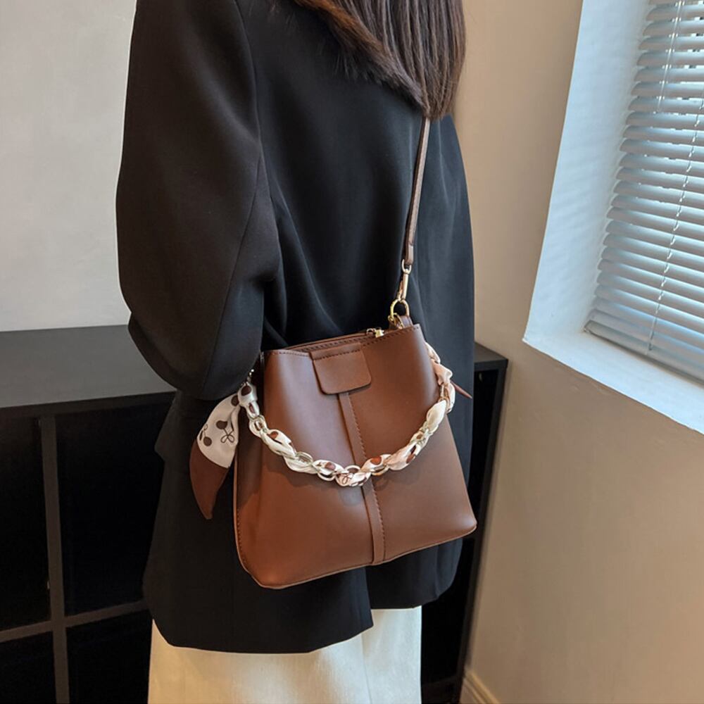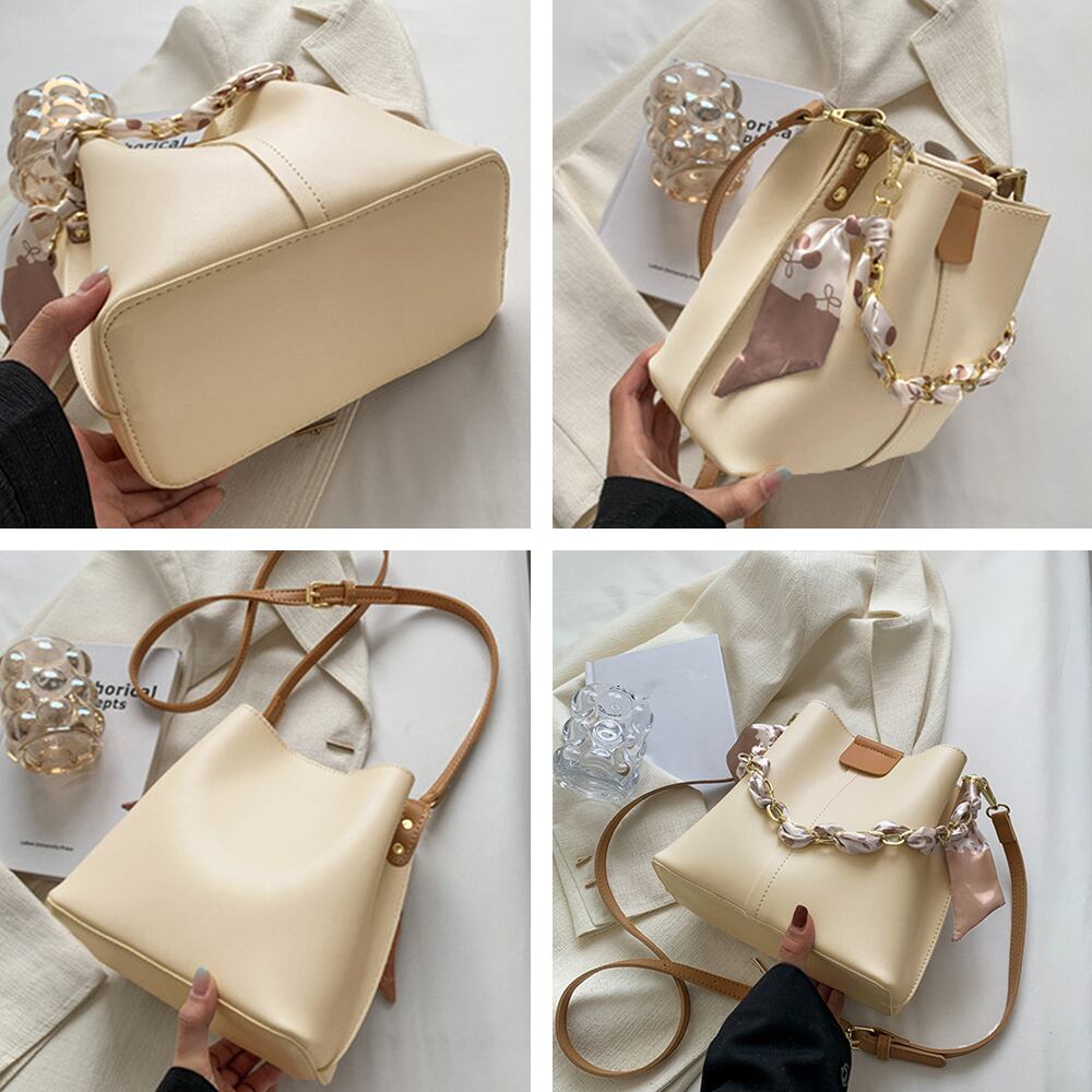 ◆レディース PUレザー手提げバッグ スカーフ付き オフィスカジュアル 肩掛けかばん フェイクレザー 韓国 通勤バッグ6色