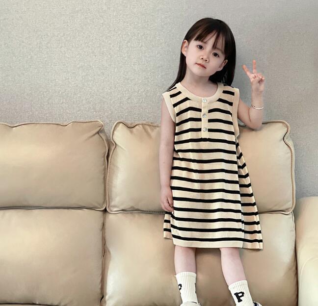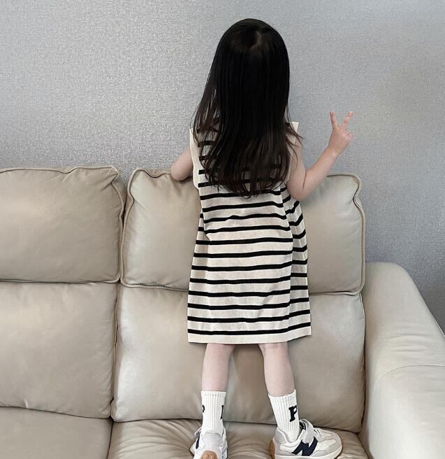 子供服★ワンピース★ノースリープ★韓国風子供服★キッズ女の子★ストライプ★80-140CM