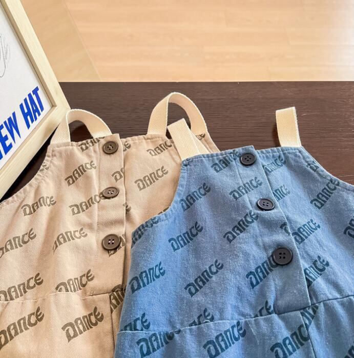 サロペットを可愛く着こなす子供服。コットン素材でお子様の肌に優しい、韓国風のカジュアルなデザインが特徴です。男女兼用で、幅広い年齢のお子様におすすめです。2色展開で、お好みの色をお選びいただけます。
