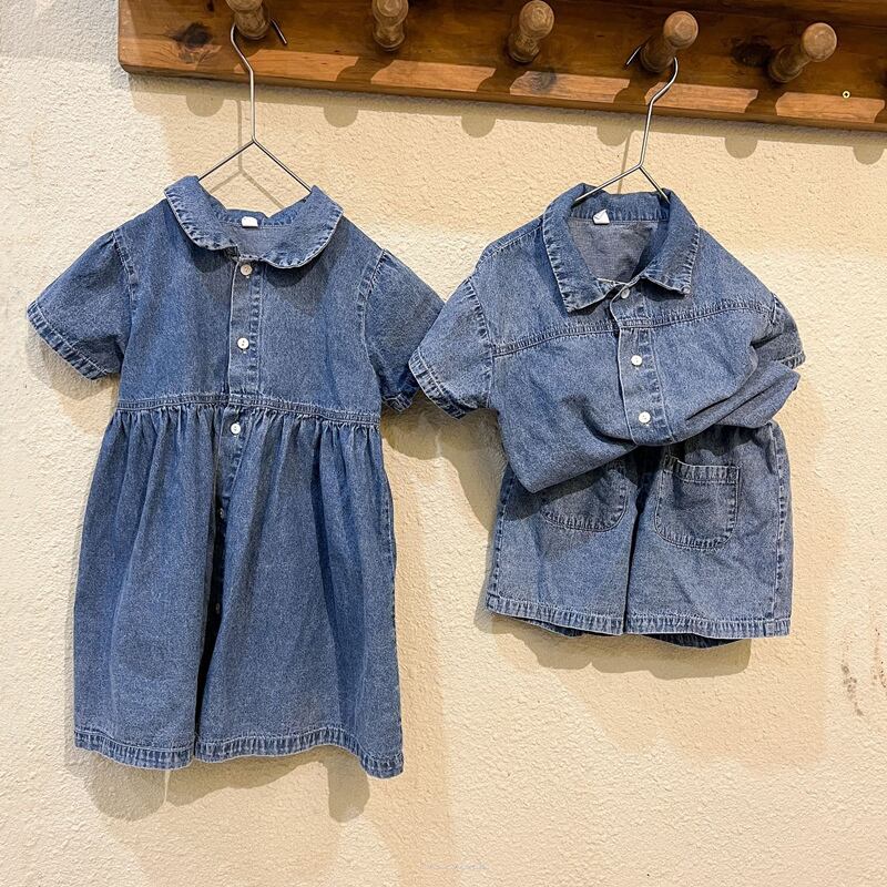 夏新作 デニム 上下セット 半袖 子供服 可愛い カジュアル