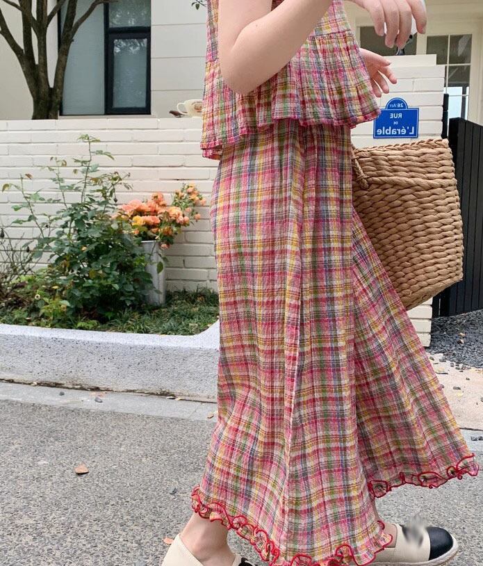 -||- 季節に合わせたトレンドの魅力が詰まった、韓国風子供服 ガールズのチェック柄フリルノースリーブセット。お子様の個性を楽しみながら、おしゃれ心を育む一着です。真のおしゃれを知るあなたのお子様に、ぜひこのセットをご提案いたします。