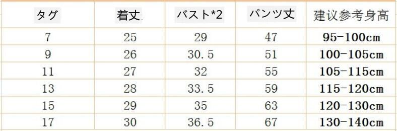 夏の新作子供服が登場!トップスとズボンがセットになった可愛いアイテムです。お子様にぴったりなサイズ展開で、タグ7から17サイズまで揃っています。2色展開で、お好きなカラーをお選びいただけます。