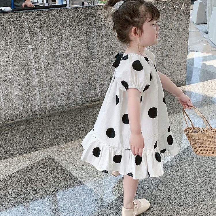 キッズワンピース 水玉柄 女の子夏物 90-130cm 半袖 リボン