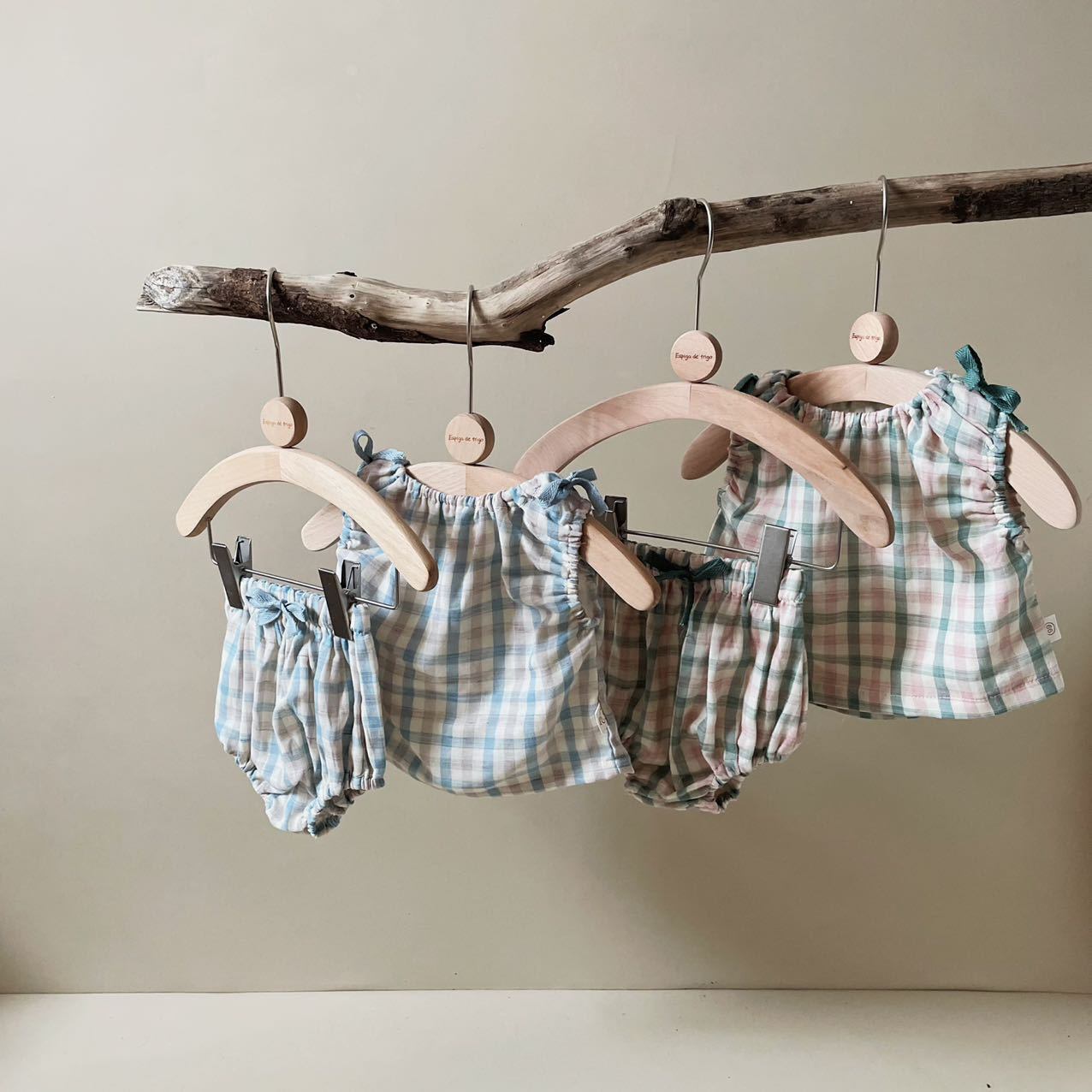可愛いベビー服の新作が登場!夏らしいチェック柄のセットアップは、おしゃれなベストとかわいいブルマーがセットになっています。素材には綿95%を使用し、ベビーの肌に優しい着心地です。ブルーチェック柄とグリーンチェック柄の2色展開で、サイズも66〜90cmと幅広い年齢のお子様におすすめです。