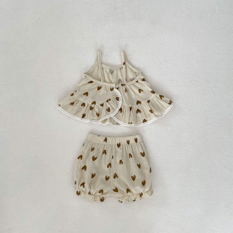 夏新作 ベビー服 女の子 セットアップ ハート柄 キャミソール ショートパンツ 子供服 可愛い