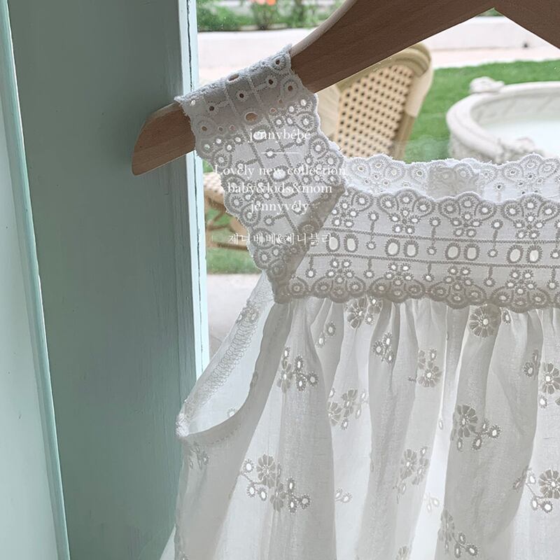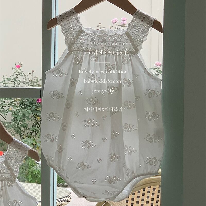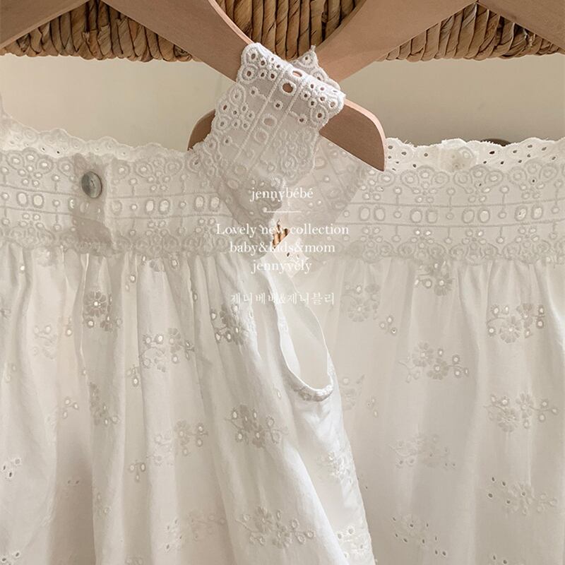 ご家族でお揃いのコーディネートが楽しめる、夏の新作子供服が登場しました!姉妹でお揃いの可愛さを楽しめる、レースと刺繍が施されたロンパースやベストが選べる2タイプをご用意しております。❋こちらはロンパースです!