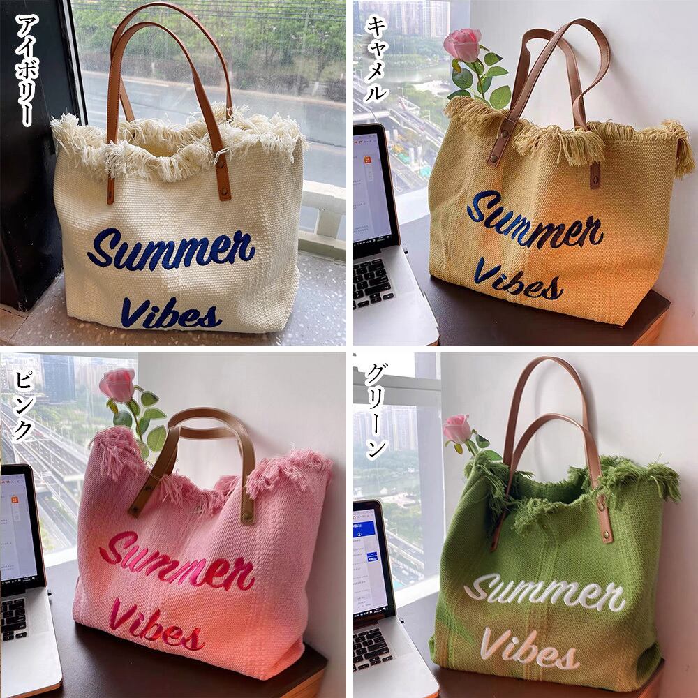 おしゃれ英字ロゴ 肩掛けかばん レディース ビーチバッグ 手提げバッグ カジュアルマザーズバッグ 大きめかばん 韓国風鞄