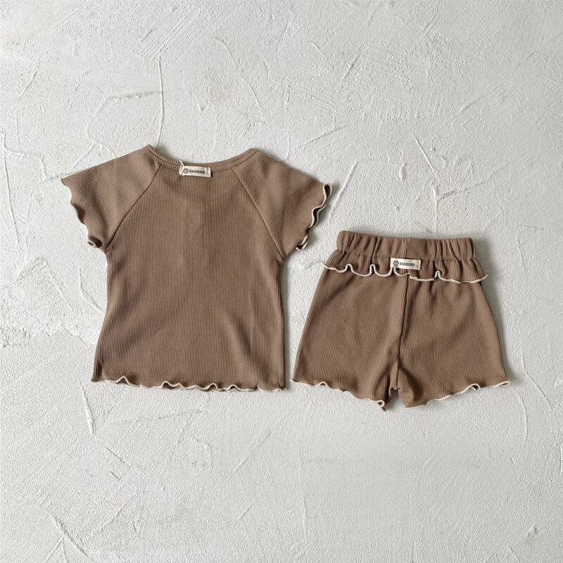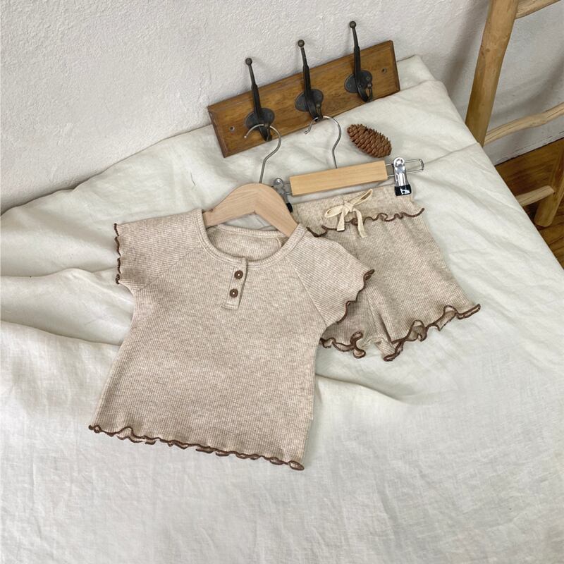 赤ちゃんの可愛らしさを一層引き立てる、ワッフル素材のベビー服セットアップをご紹介します。綿95%とポリエステル5%の素材で、赤ちゃんの肌に優しい着心地です。オフホワイト、ベージュ、コーヒー、ピンクの4色展開で、各サイズに合わせたコーディネートが楽しめます。半袖Tシャツとショートパンツの2点セットなので、ワードローブに便利です。