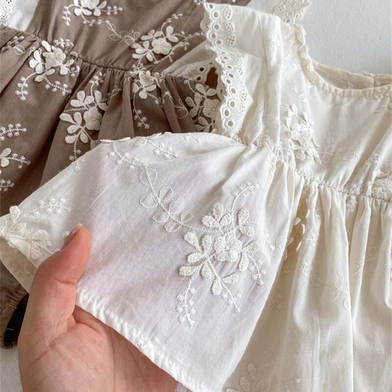 可愛らしい刺繍が施された夏にぴったりのロンパースが登場しました!繊細なレースと女の子らしいデザインが魅力的な一着です。肌触りの良い綿素材で作られており、赤ちゃんのデリケートなお肌にも安心して着せられます。ボタン付きで着脱も簡単です。洗濯後も型崩れせずに長くお使いいただけます。ぜひ、大切な赤ちゃんにこの可愛らしい一着をプレゼントしてあげてください♪