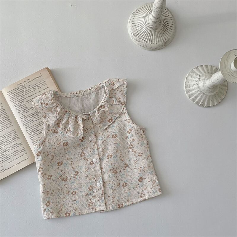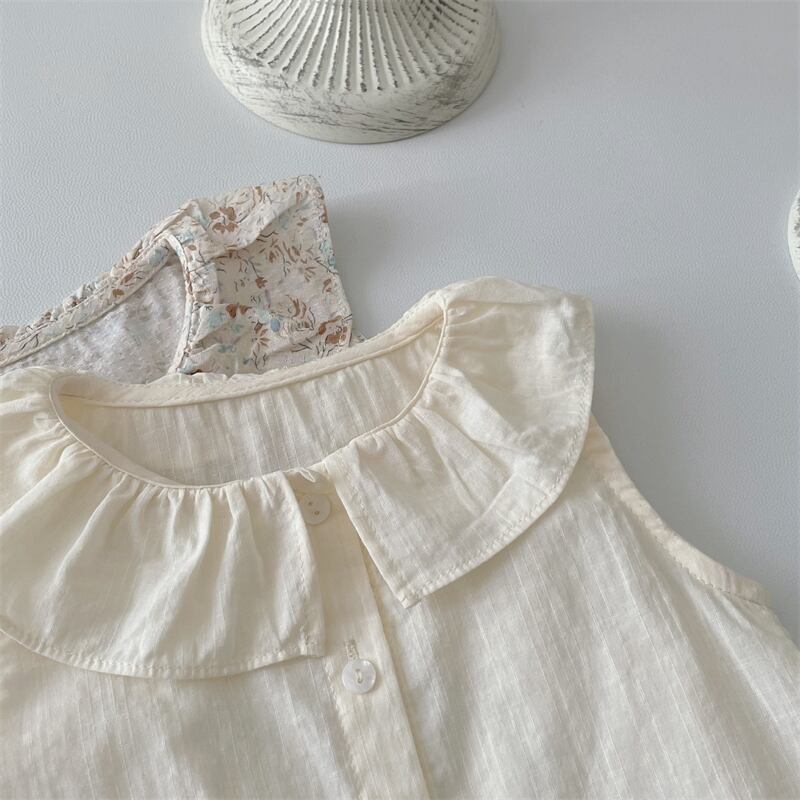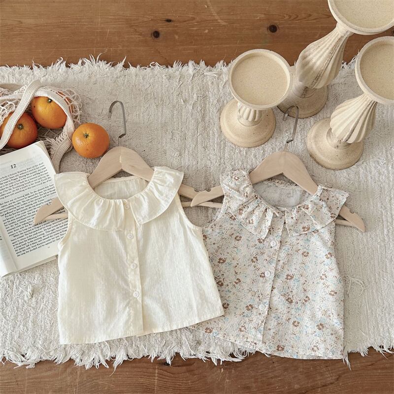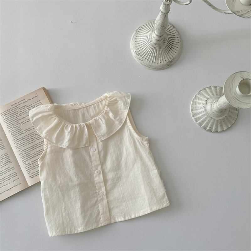 夏新作 ベビー服 ラッフルカラー シャツ ノースリーブ ブラウス カジュアル トップス