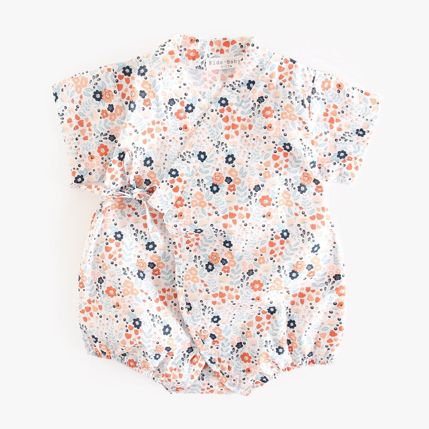 夏新作 ベビー 甚平ロンパース 和風 半袖 前開き 浴衣 花柄 新生児服 可愛い 子供服 夏祭りホワイト/3-6m/参考身長68