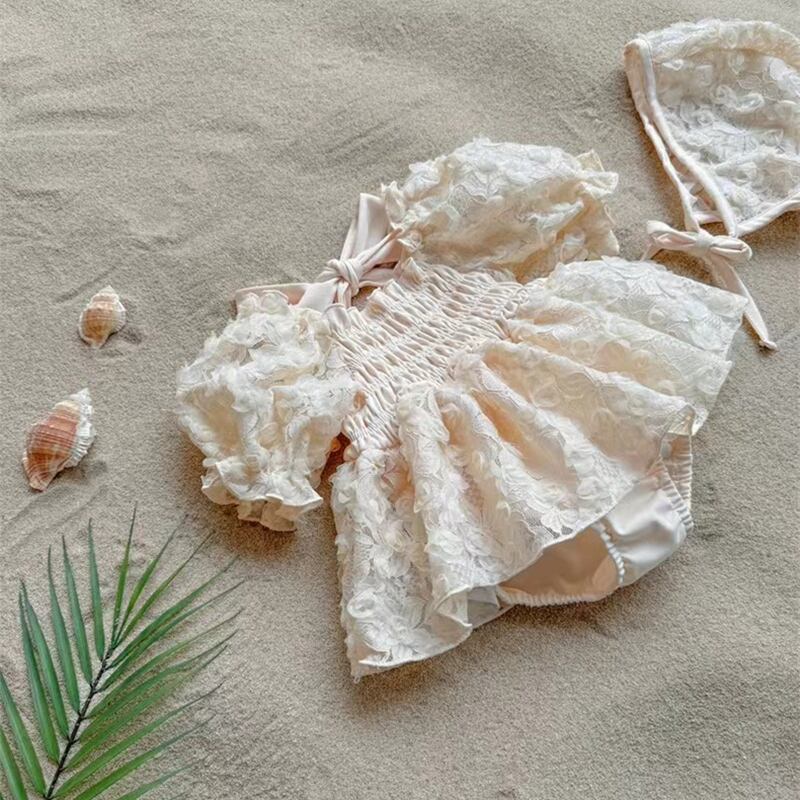 夏新作 ベビー服 女の子 パフスリーブ ロンパース 花びら 子供服 可愛い おしゃれ 柔らかい