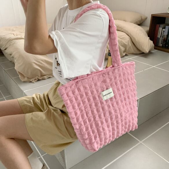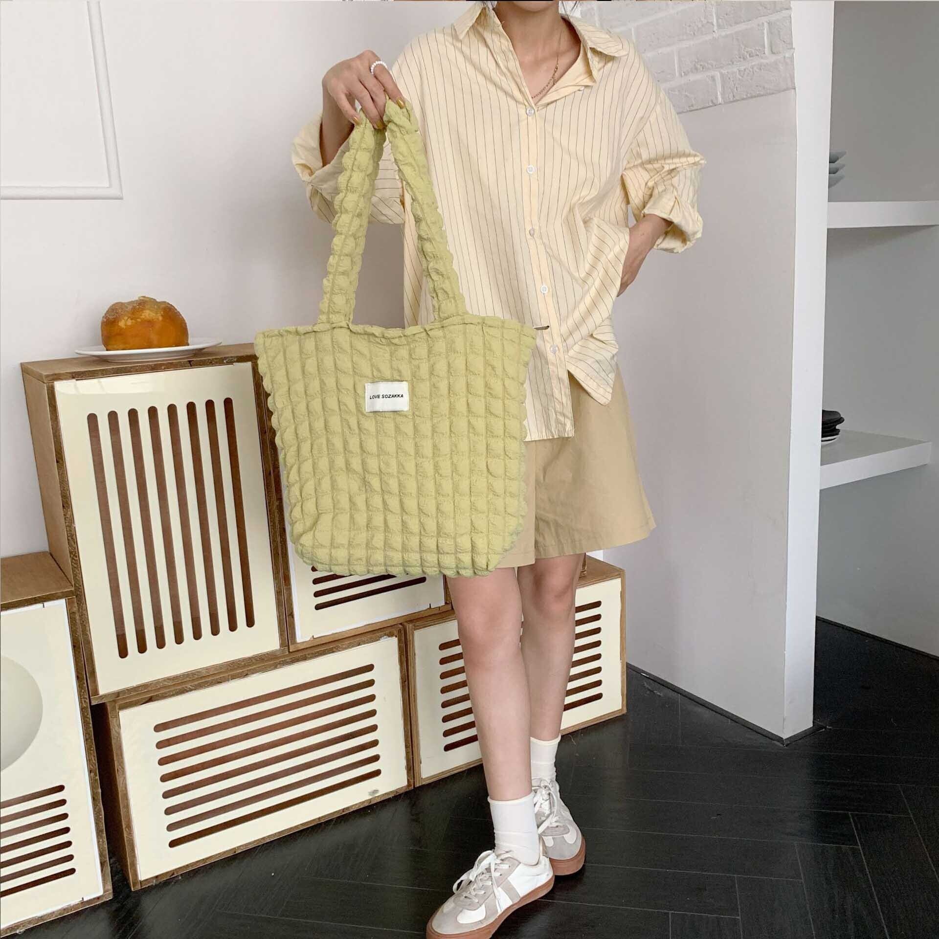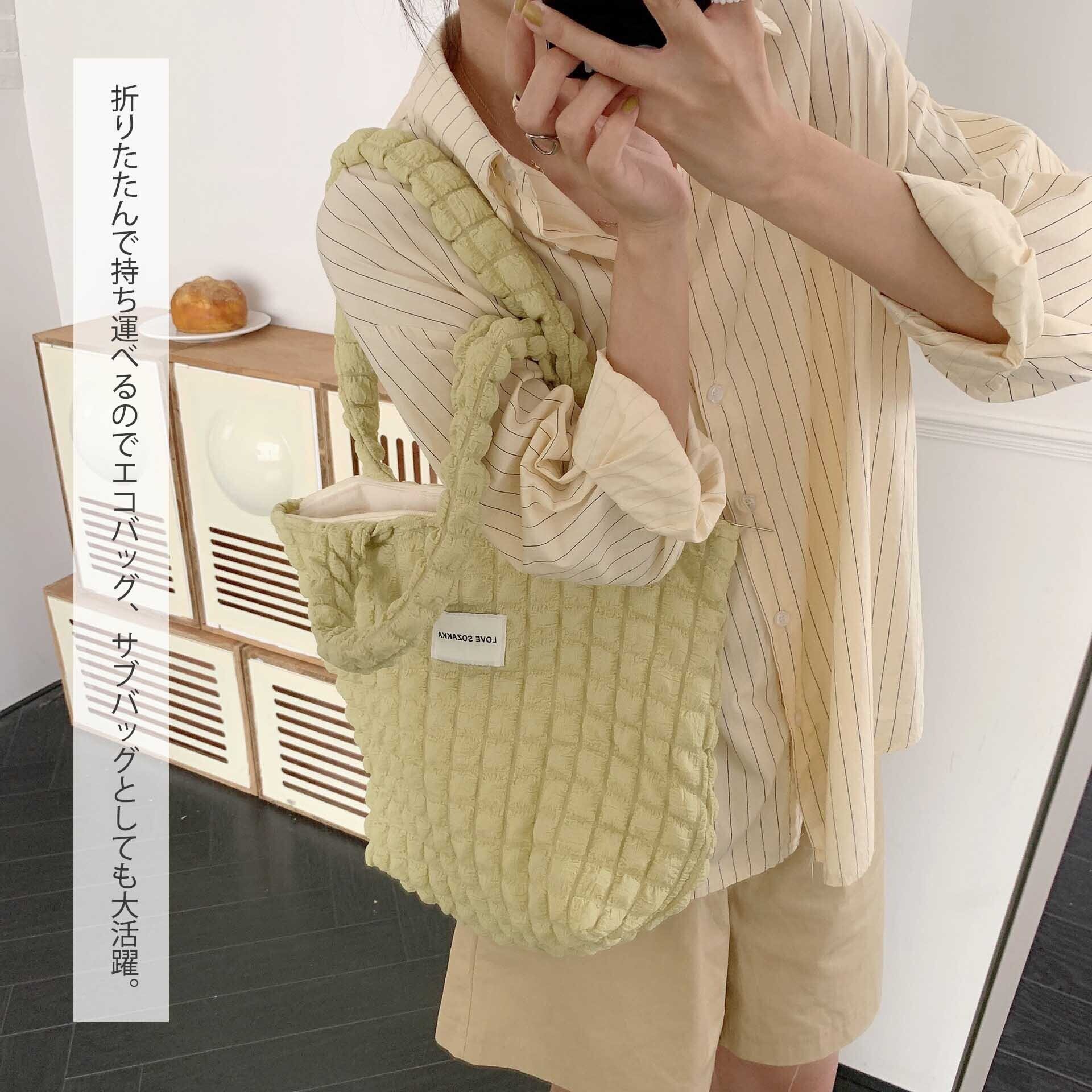 新作 レディース ショルダートートバッグ ポップコーン ワッフル サブバッグ 軽量 ファスナー 可愛い