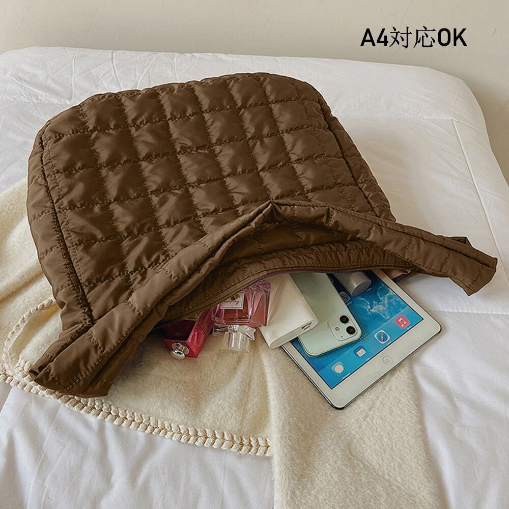 キルティング ソフトバッグ 斜めがけ カジュアル 大きめトートバッグ 軽量 マザーバッグ 大容量 餃子型バッグ 黒