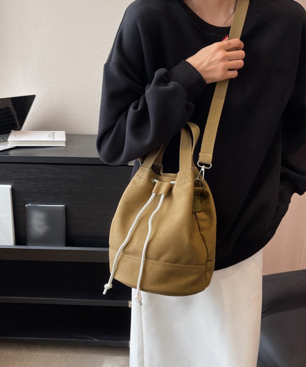 3wayバケツバッグ キャンバスバッグ 斜め掛けバッグ 使いやすいドローストリングバッグ 手提げバッグ 肩掛け鞄通勤通学