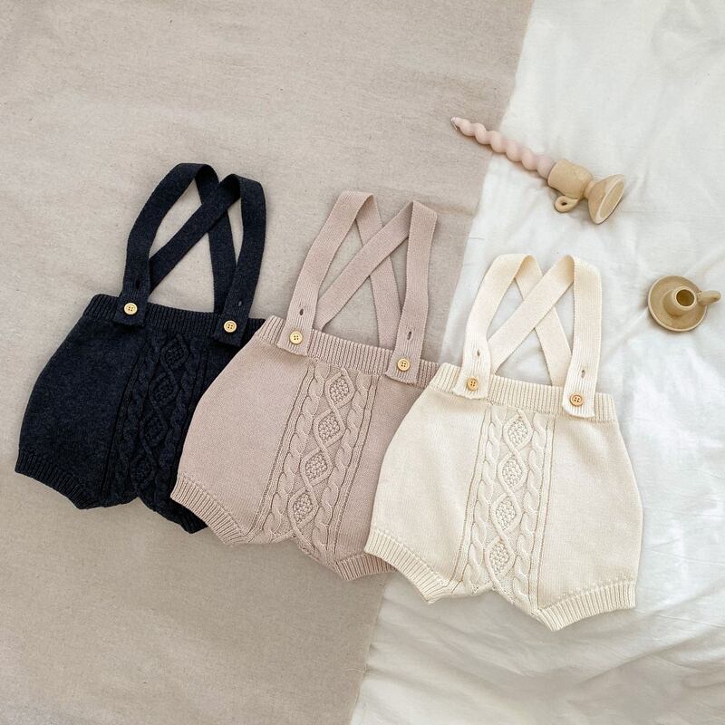 暖かみのあるコットン100%を使用した、新作ニットロンパースがinsから登場!かわいいサロペットスタイルで、お子様のお洋服コーディネートにぴったり。オフホワイト、ベージュ、ブラックの3色展開で、様々なシーンにマッチします。サイズも66~100まで豊富に揃っています。