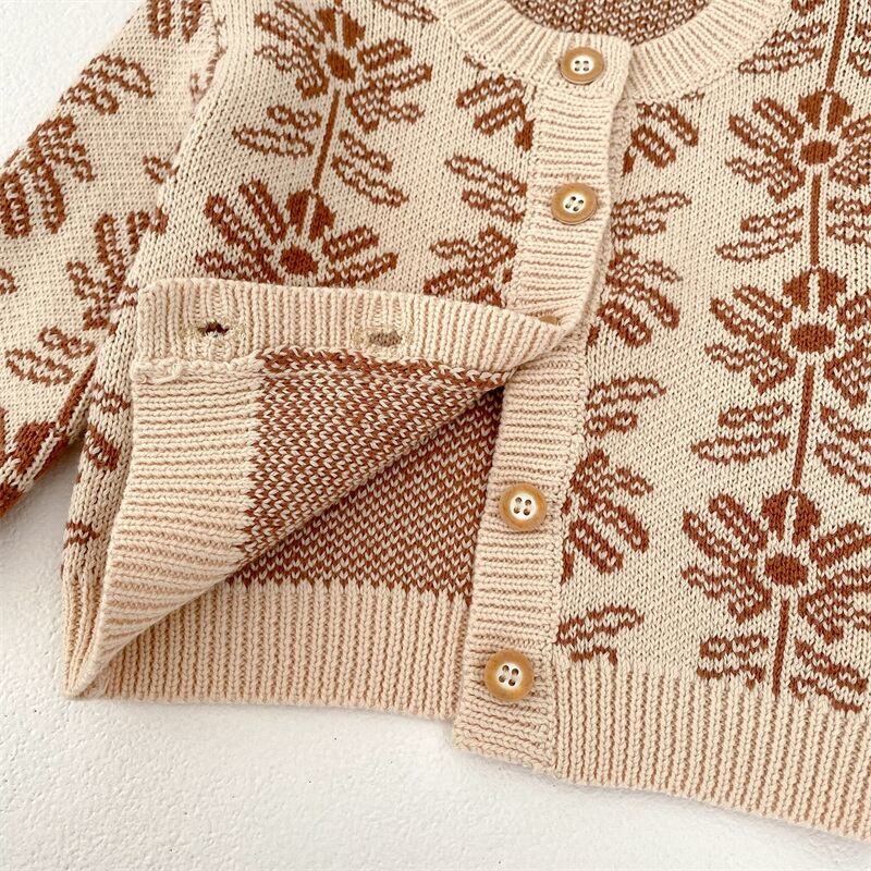 秋新作 ベビー服 花柄 カーディガン ニット トップス セーター 可愛い ジャカード ロンパース