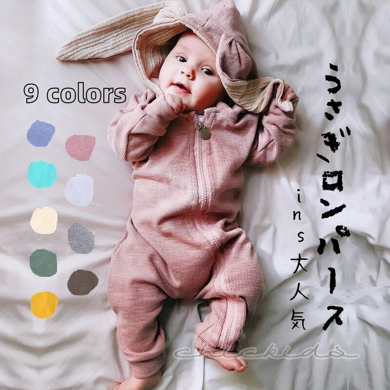 ins大人気 ウサギロンパース 可愛い ベビーロンパース カバーオール 春秋 出産祝い