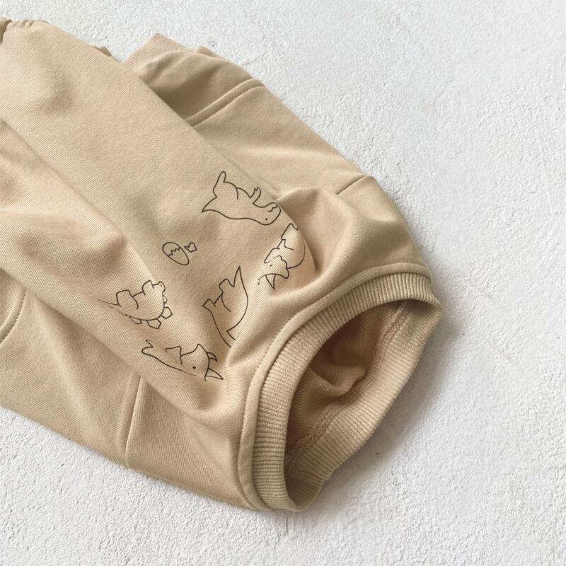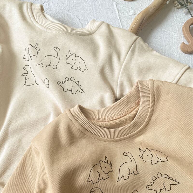 素材には、肌に優しい綿95%とポリエステル5%を使用しており、柔らかい肌触りが自慢です。お子様の敏感な肌にも安心してご着用いただけます。可愛い恐竜のプリントは、楽しい雰囲気を演出し、どんなシーンでも注目を集めること間違いなしです!