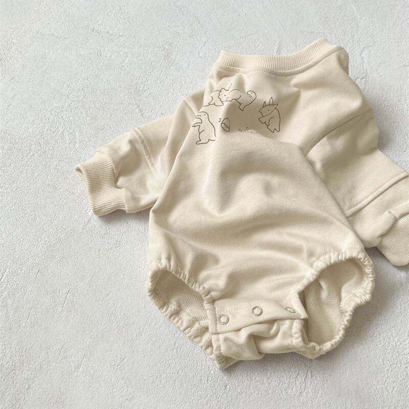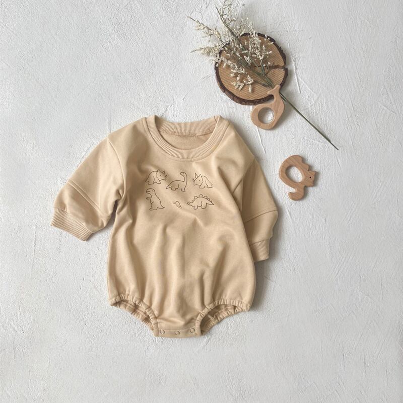 新作のベビー服ロンパースが入荷しました!愛らしい恐竜柄のデザインが特長で、男の子にも女の子にもぴったりな一着です。このロンパースは、特別なお出かけだけでなく、日常のカジュアルスタイルにも最適で、赤ちゃんの可愛らしさを引き立てます!