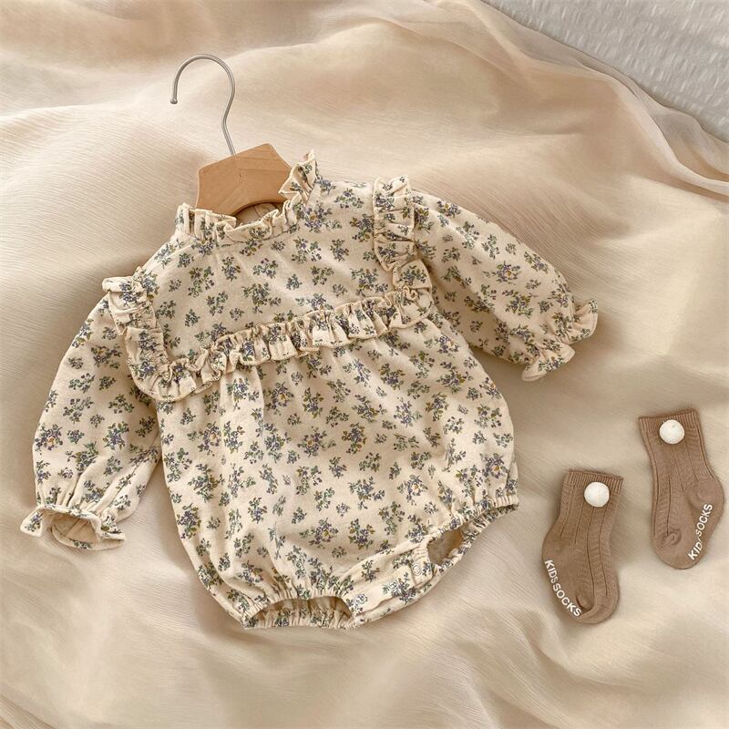 秋新作★ベビー服★ロンパースが登場しました!このアイテムは、華やかな花柄デザインとフリルが特徴で、特別なお出かけから日常のカジュアルスタイルまで幅広くご利用いただける一着です。女の子の可愛さを際立たせるスタイルに仕上げています!
