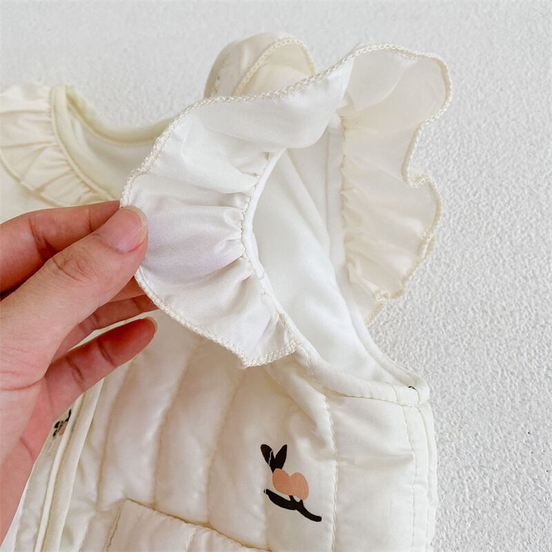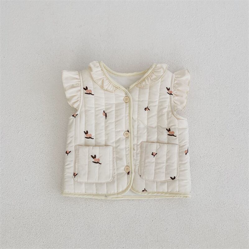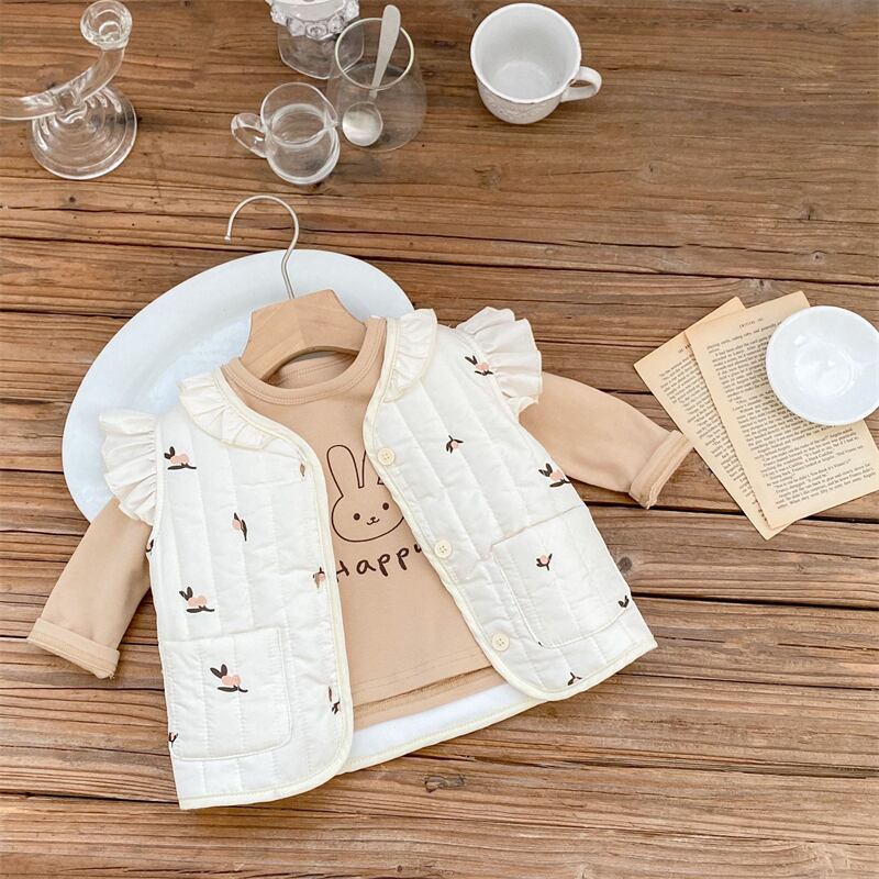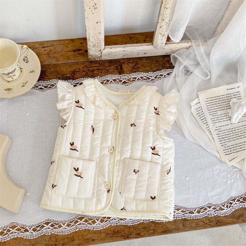 秋冬新作★子供服★中綿ベストが新たに登場しました!このアイテムは、可愛いフリルデザインと花柄が特長で、特別なお出かけから日常のカジュアルスタイルまで幅広くご利用いただける一着です。お子様の愛らしさを引き立てるスタイルに仕上げています!