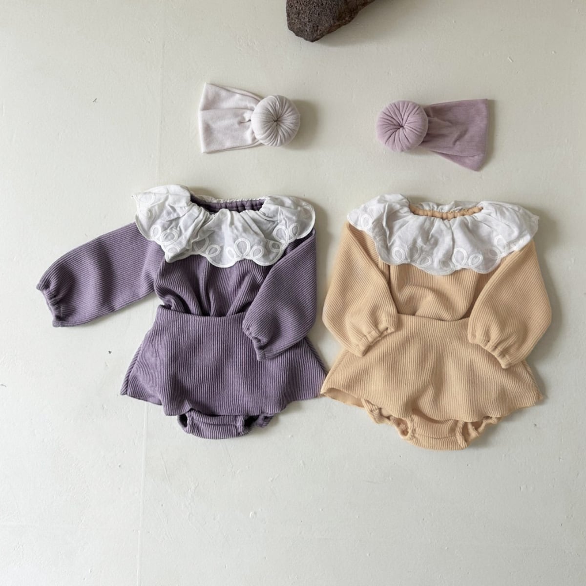 秋新作★ベビー服★リブセットアップが登場しました!このアイテムは、シンプルでありながらもかわいらしいレースのデザインが特長で、特別なお出かけから日常のカジュアルスタイルまで幅広くご利用いただける一着です。お子様の可愛らしさを引き立てるスタイルに仕上げています!