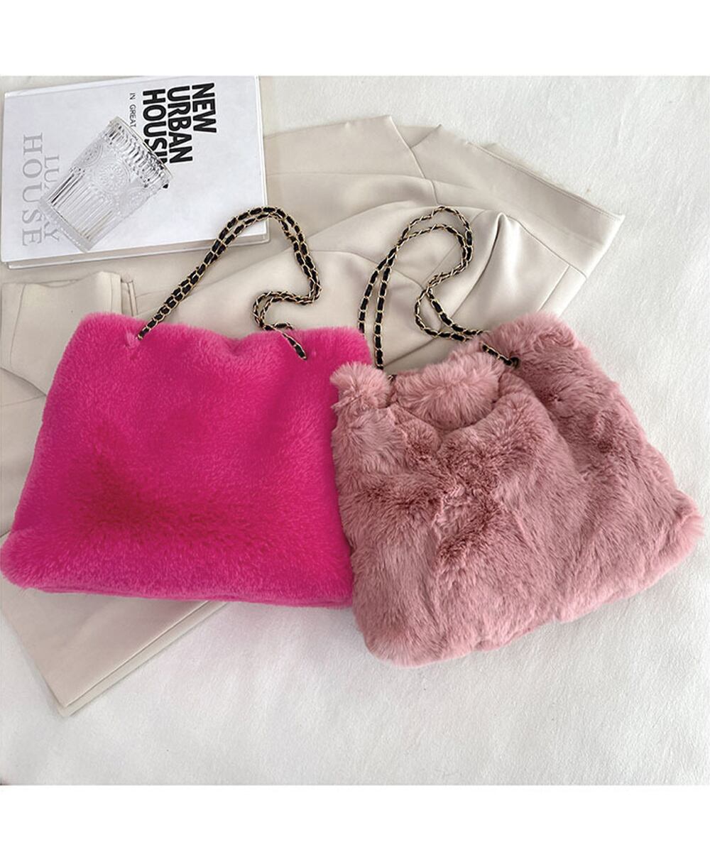 ふんわりとしたフェイクファーで仕上げたもこもこ手触りのチェーンショルダーバッグ