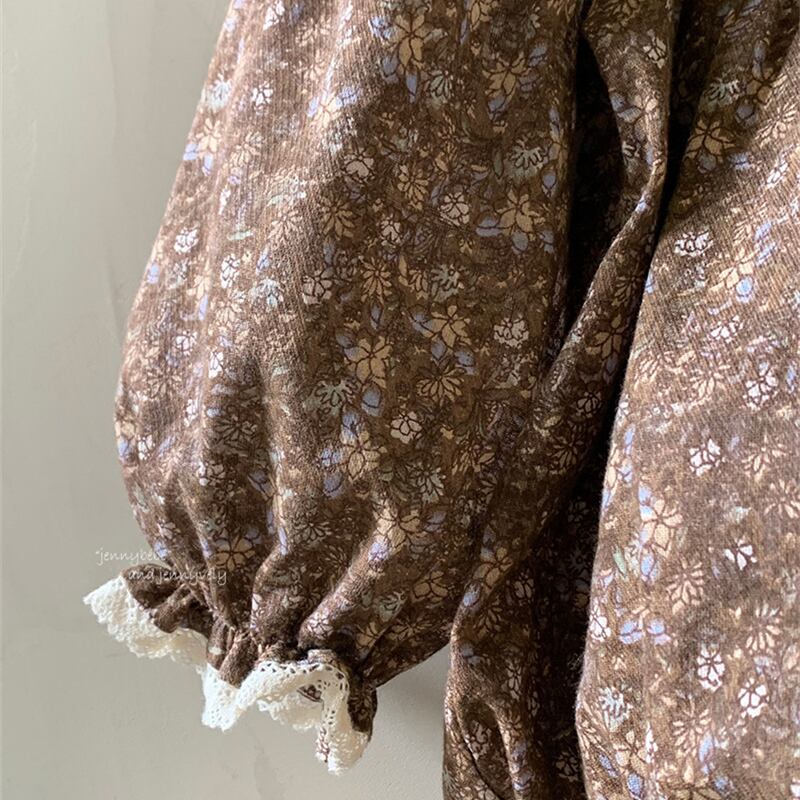 ★秋新作 ベビー服★レース襟 花柄 ロンパース★パフスリーブ 女の子用カバーオール★可愛い子供服