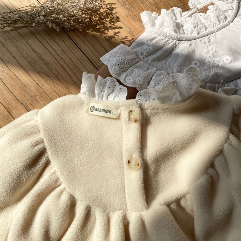 ins 秋新作 ベビー服 立ち襟 レース ロンパース 裏起毛 可愛い 新生児 おしゃれ 子供服 あたっか