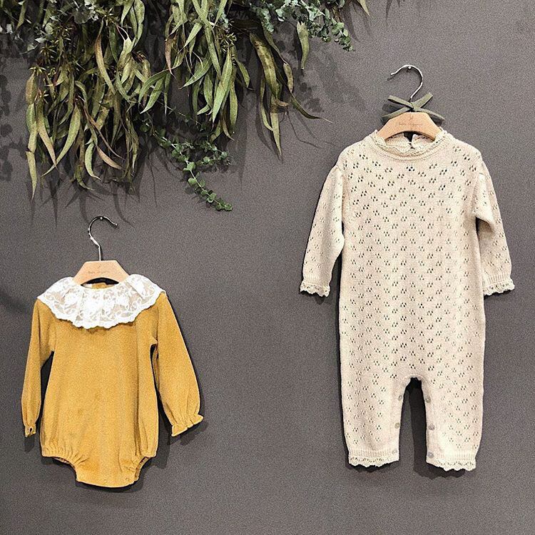ins 秋新作 ins ベビー服 ロンパース 帽子 2点セット ニット 連体服 透かし雕り 女の子 可愛い