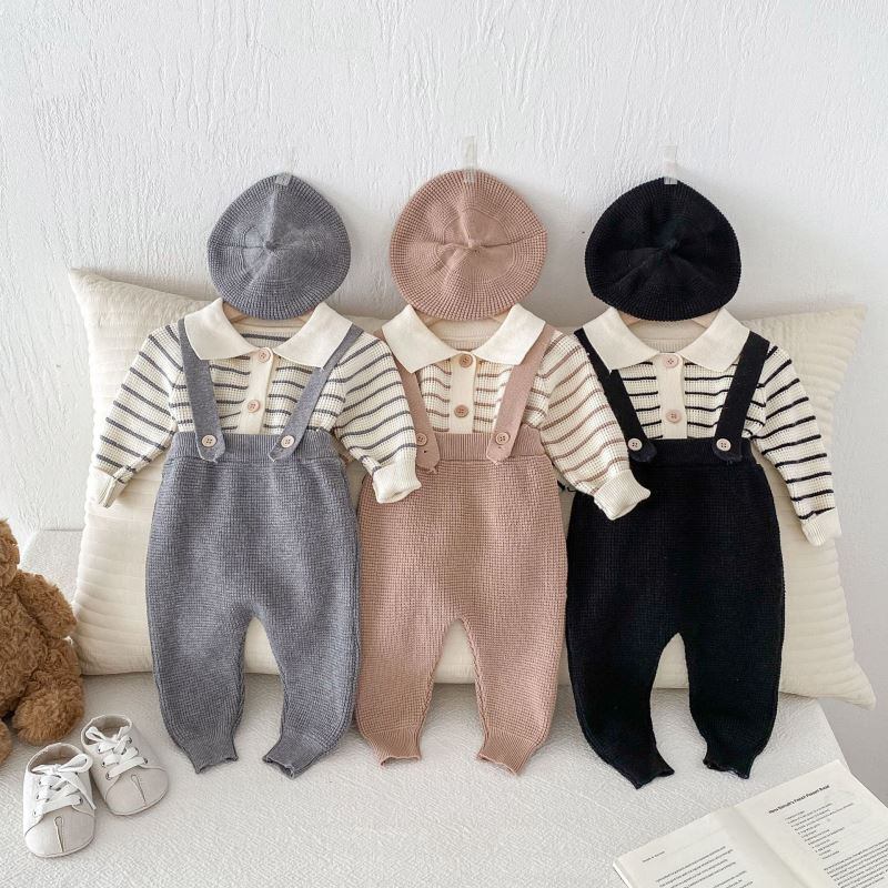 子供服★トップス+サロペット+帽子★セットアップ★韓国風子供服★3色66cm~90cm