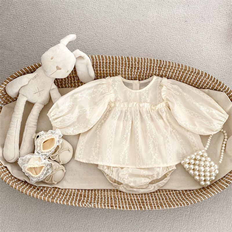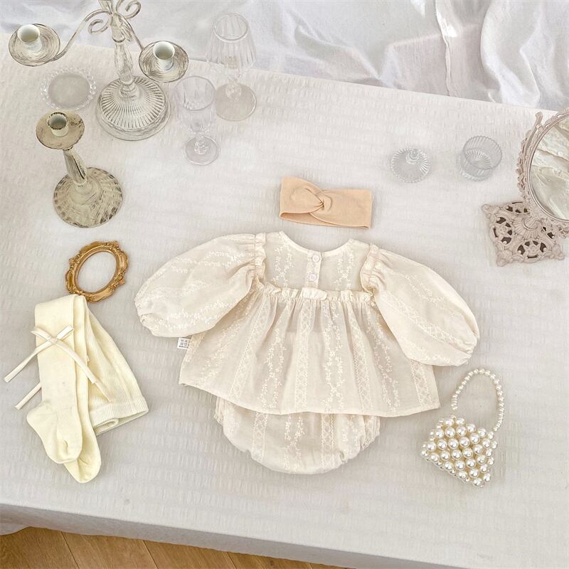 ベビー服 女の子 セットアップ 花柄 刺繍 長袖シャツ ブルマ 可愛い 子供服 おしゃれ