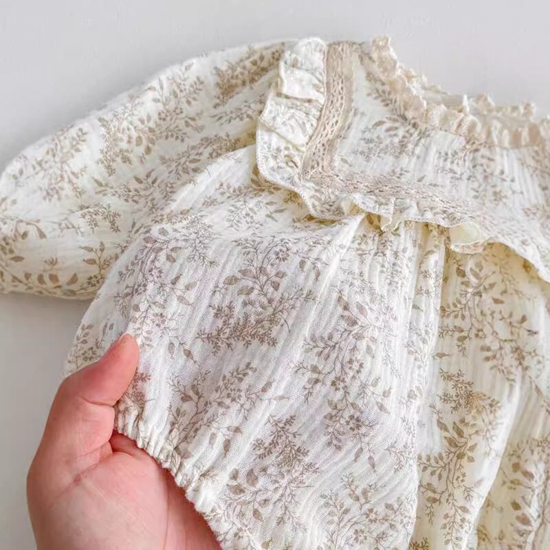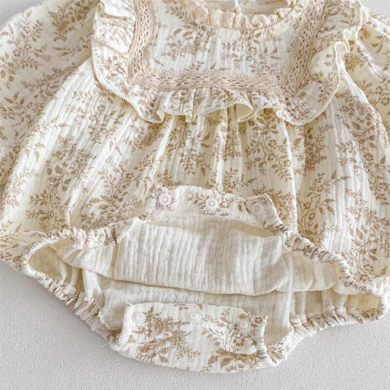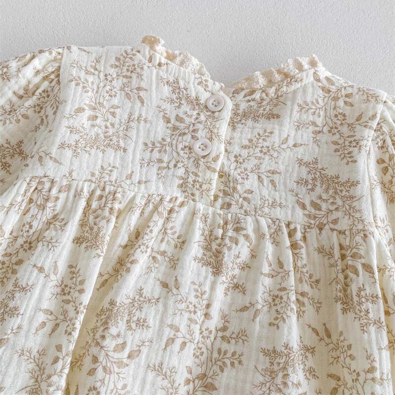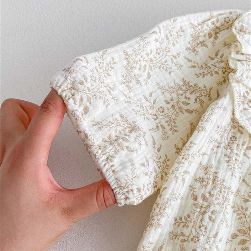 春新作 ベビー服 立ち襟 花柄 ロンパース パフスリーブ 女児 可愛い 子供服 おしゃれ 柔らか