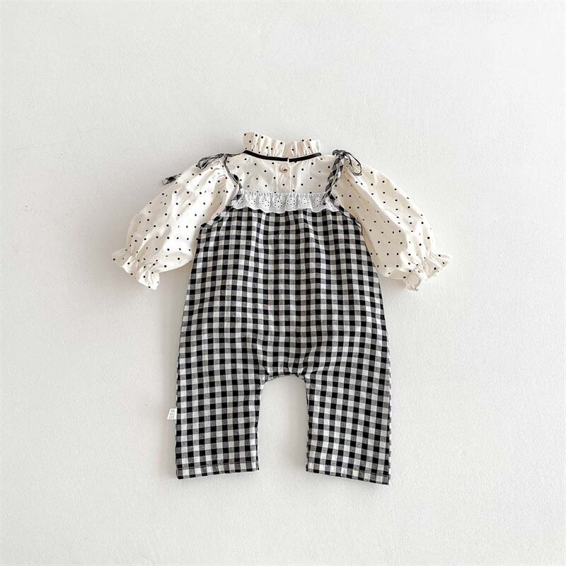 春新作 ベビー服 女の子 吊りズボン サロペット パンツ 格子 レース 可愛い 子供服 おしゃれ セット