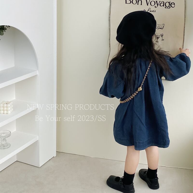 春新作 子供服 女の子 デニム シャツワンピース 長袖 可愛い おしゃれ Aライン ゆったり