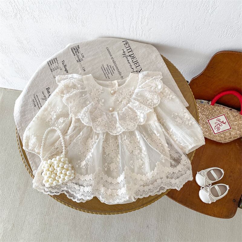 春新作 ベビー服 花柄 レースドッキング ロンパース 長袖 女の子 カバーオール 可愛い 子供服
